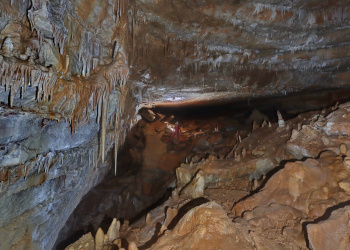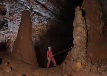At just under 15 km, the Reseau de la Tessone is now the second longest in the Gard department. Even if the part accessible to non-divers is only 3.7 km long. Nevertheless, a visit to the Grotte de Calles (or as a traverse to the Event de Bez) has become an absolute classic. The narrow entrance section leads to the truly enormous Salles du Balcon and Phare. Here is the Mikado shaft, which allows you to descend to the middle level. This leads on to the huge and beautiful Transcaussenarde gallery. We did not continue on to the deepest and most active level. But it does offer a beautiful traverse!