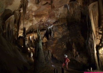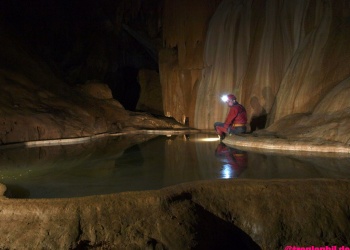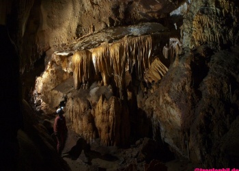 Nur eines muss man nie: sich Bücken. Hausgroße Sinterberge prägen weite Teile der Befahrung - die schon mal an die 10 Stunden dauern kann.