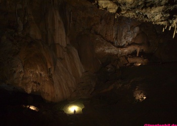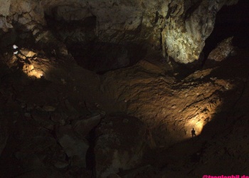 Fledermäuse des Typs Hufeisennase. Und: rießige Raumdimensionen. Einige Gangabschnitte bzw. Hallen weisen Dimensionen von 100 x 100m auf. Um bis
