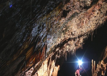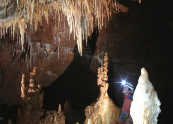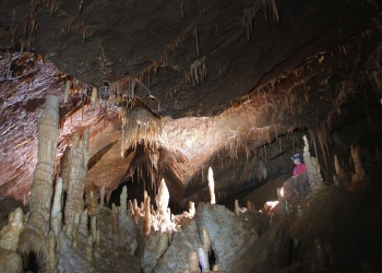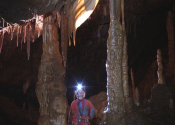 Die Grotta Claudio Skilan wurde erst Mitte der 90er Jahre nach intensiven Grabungsarbeiten entdeckt. Mittlerweile ist sie mit knapp 8km die grösste und auch eine der tiefsten Höhlen im ganzen Triester Karst. Eine Befahrung der verschlossenen Höhle ist eine ernste Unternehmung, da es zunächst einen P50 auf Eisenleitern und anschliessend einen P180 zu bezwingen gilt. Der Schacht ist damit der grösste interne Schacht im gesamten Karstgebiet und wird wohl nur von der Kacna Jama in Slowenien übertroffen. Am Schachtgrund bieten sich zwei Hauptrichtungen in zum Teil enorm grossen Galerien, welche sich zusätzlich auch noch über- und unterlagern. Die gesamte Höhle ist durch ein sehr düsteres, lehmiges aber zugleich kristallines Ambiente geprägt. Auch die Luft ist nicht die allerfrischeste. Dafür sind zum Teil extrem schöne Bereich mit wirklich schönen Speleothemen eingestreut. Alles ist vollständig unberührt und unzerstört. Alte, haushohe Kolonnen wechseln mit frischem, weissen Sinter, Excentriques und Kristallen. Da facto eine der faszinierendsten Höhlen im Karst. Für die Befahrung eines Teilastes benötigt man zwischen 12-15 Stunden!!
