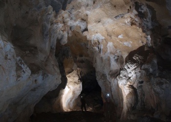 Eine lange bekannte Horizontalhöhle im Ibie-Tal mit 4 Eingängen. Einst ist da wohl die Ibie oder gar die Ardeche durchgeflossen. Durch den großräumigen Tunnel kann man ca. 400 m einfach wandern. Deshalb wurde und wird die Höhle gerne von "Nicht-Höhlenforscher-Heerscharen" besucht. Entsprechend traurig ist auch der Anblick des wohl einstmalig schönen Sinters. Dafür zieren zahlreiche Schmierereinen den Weg. Ein typisches Beispiel für eine "abgenudelte Opferhöhle" entsprechend z.B. dem bayrischen Angerloch, der fränkischen Bismarckgrotte oder dem Schweizer Nidlenloch. Vielleicht braucht es das aber auch, um neuere Entdeckungen entsprechend zu schützen.