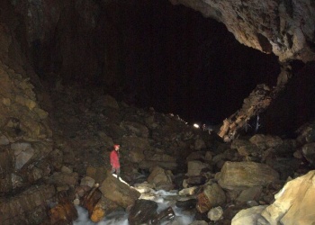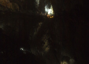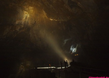 Dann kommt das große und ermüdende Finale: 5-6 Stunden kraxelt und marschiert man durch die rießigen Hallen des Pierre Saint Martin Flusses, bis man schließlich im Salle de La Verna herauskommt. Salle de Navarre, Salle Casteret, Salle Loubens, Le Metro, Salle Queffelec, Salle Adelie, Salle Chevalier, Salle de la Verna. Wer denkt, hier ist man gleich draußen, hat weit gefehlt. Im Nachhinein sicherlich der härteste Teil der Traverse. Trotz exzellenter Markierungen im Salle Navarre verlaufen - weil alles so gigantisch ist. Manchmal findet man die Durchschlupfe oder rechten Kletterstellen im Blockwerk nicht auf Anhieb... Und eben jene Blockklettereien machen diesen Teil so extrem ermüdend. Mal 150 Höhenmeter da hinauf. DAnn da 200 hinab, dann wieder 50, 70, etc.....endlos. Dann: endlich kommt einem das schwarze Nichts bekannt vor.....wir sind im Salle Chevalier. nur noch 1 Stunde.....dann erreichen wir endlich die Plattform im Salle de la Verna. Wahnsinn. Noch schnell durch den 700m langen Tunnel marschieren. Tür auf und GESCHAFFT! Total erschöpft müssen wir jetzt noch 1,5 Sunden durch die warme Nacht bis zum Auto nach Saint Engrace absteigen. Der totale Knock-Out! Am Auto schlafen wir nach dem verdienten Sieg-Bier vor Erschöpfung erstmal alle ein, bevor wir zurück in unser Quartier fahren.