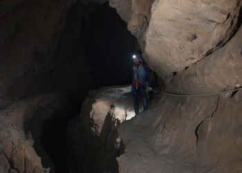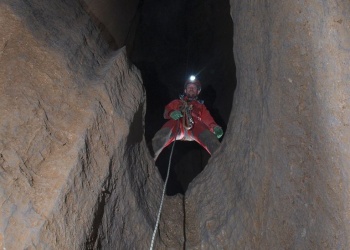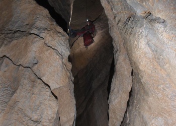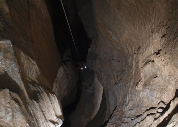 Tag 2: Anmarsch und Finden des SC3 Höhleneingangs im gigantischen Karstplateau des Pierre Saint Martin. Einbauen der Schächte bis auf 370 m Tiefe. (Dauer ca. 6 Std. + 1,5 Std. Anmarsch) Die Schächte sind perfekt eingerichtet mit Klebehaken, durchwegs großräumig und stellen eigentlich keine großen Probleme dar.