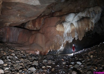 Die Pha Daeng Höhle befindet sich im äußersten Norden der Pang Mapha Provinz kurz vor der burmesischen Grenze. Der Höhlenbach geht einfach 1,7 km durch einen Karstknubbel hindurch mit einem Sink (Schlucker) auf der einen und einem Resourgence (Quelle) Eingang auf der anderen Seite. Im Prinzip kann man einfach durch die Höhle wandern, wäre nicht exakt in der Hälfte eine Engstelle, wo man bis zum Kopf ins Wasser muss. Ansonsten findet sich sowohl schöner Sinter wie auch jede Menge eingeschwemmtes und schimmelndes Holz in der Höhle.