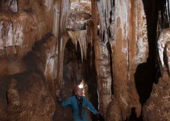 Die Grotta Valentina ist verschlossen - und daher dachten zumindest wir, sollte sie auch relativ schön sein. Leider hat sich diese Vermutung nicht bewahrheitet und was wir zu sehen bekommen haben, ist eines der schäbigsten Löcher des Triester Karstes. Alles was vom Sinter der gut 300 m langen Horizontalhöhle noch übrig ist, ist mit Lehm und Schmierereien übersät. Schade eigentlich und ein gutes Beispiel dafür das leicht zugängliche und einfach zu befahrende Höhlen eben sofort geschützt werden müssen.